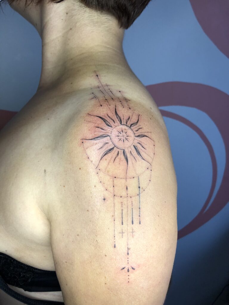 Chez Sashocolat Tattoo, la spécialité réside dans l’art de sublimer la peau à travers des motifs délicats et sophistiqués. Le floral s’épanouit en compositions organiques et poétiques, le dot art offre une finesse et une précision hypnotiques, tandis que l’ornemental vient enrichir le corps de détails élégants et intemporels. Chaque tatouage est envisagé comme une pièce unique, conçue en étroite collaboration avec le client pour traduire au mieux ses aspirations et son histoire.