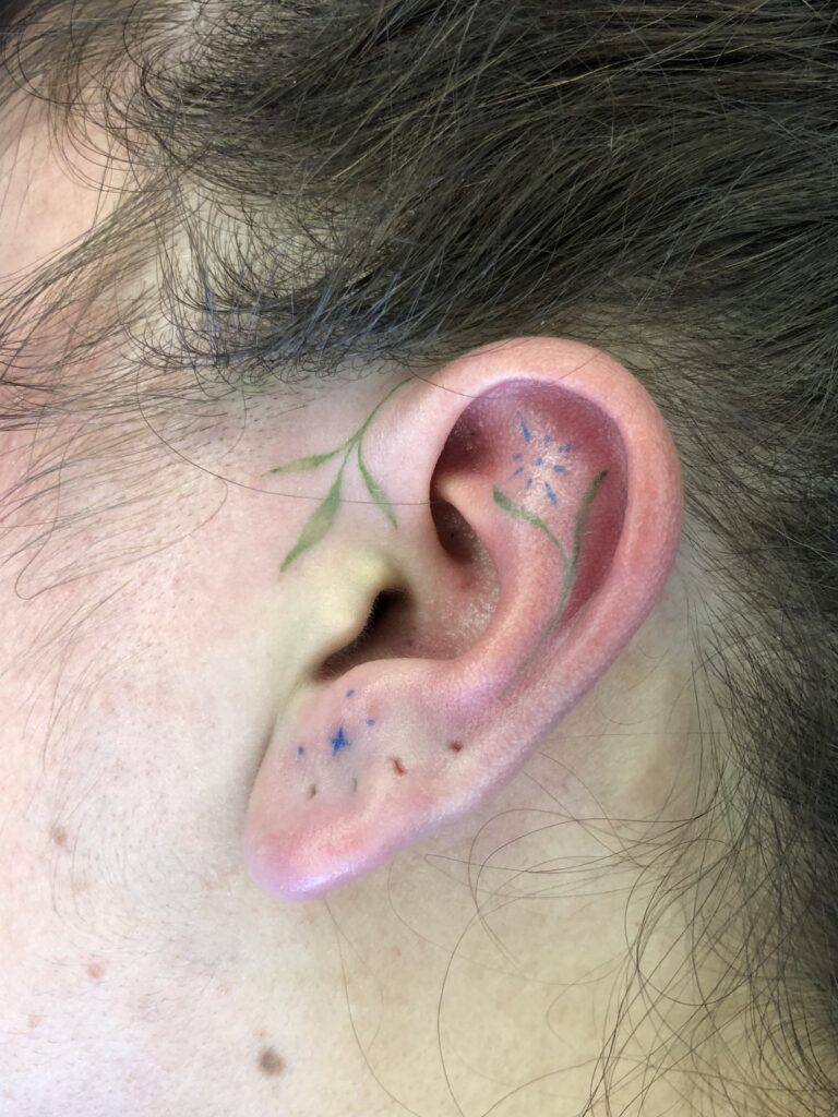 Cependant, ce premier contact enchanteur avec l’art corporel a rapidement été nuancé par une perception moins accessible de l’univers du tatouage. Les devantures obscures et l’atmosphère parfois intimidante des salons contrastaient fortement avec la sensibilité et la beauté que cet art pouvait véhiculer. Un désir profond est alors né : celui de créer un lieu différent, un sanctuaire où la créativité s’épanouirait dans un environnement chaleureux et inclusif.